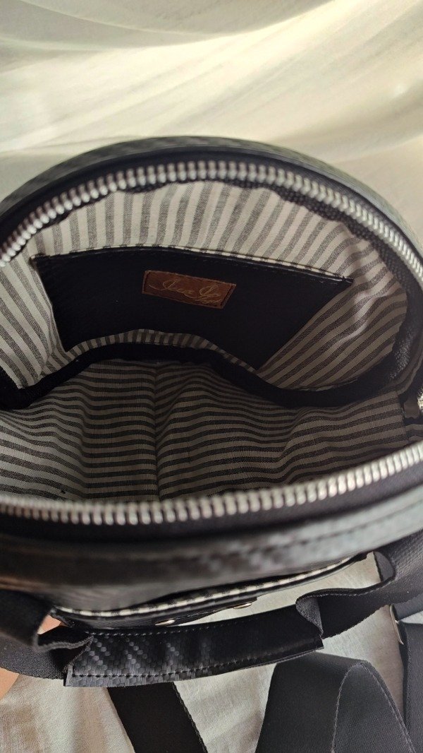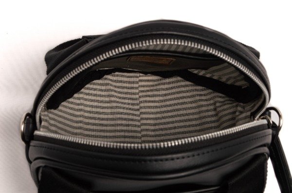 Interior forrado con tela Gross rayado, también tiene un bolsillito.
